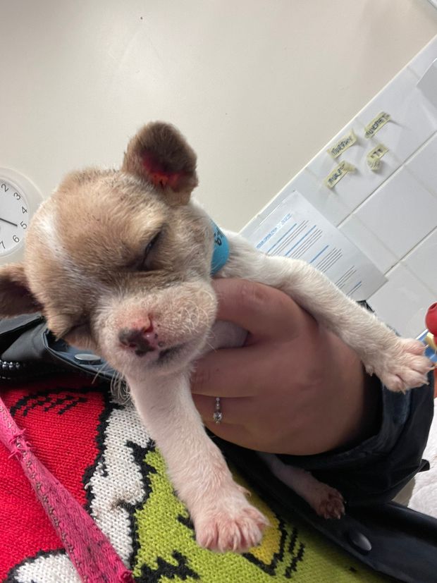 During that first night, we suffered a devastating blow, as Murphy, the first puppy, was too weak to carry on and sadly passed away. Then Frankie, the second puppy, started to deteriorate and had to make a trip to the emergency vets and was put on fluids. He was then closely monitored throughout the day, whilst Evie, the mum, received care back at the centre.